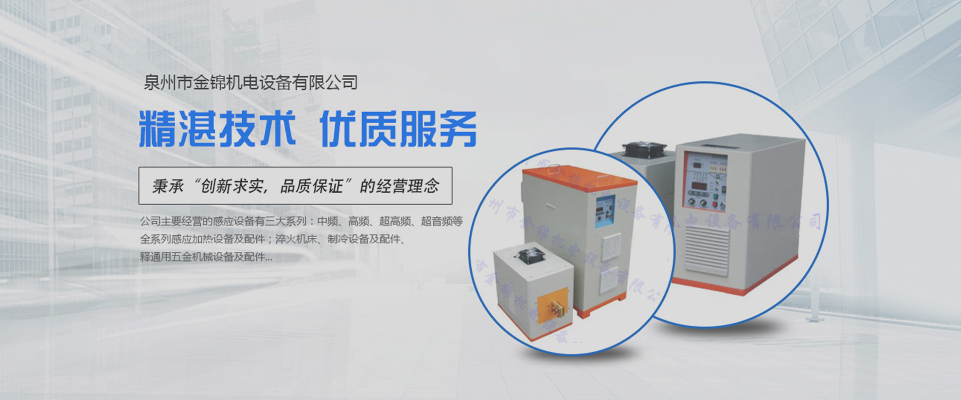 ??泉州市金錦機(jī)電設(shè)備有限公司,是一家專業(yè)生產(chǎn)銷售感應(yīng)加熱設(shè)備與優(yōu)化解決方案的高新技術(shù)企業(yè)。公司自2006年成立以來,以精湛的技術(shù)、優(yōu)質(zhì)的服務(wù)、優(yōu)良的產(chǎn)品贏得了廣大用戶的認(rèn)可和信賴。產(chǎn)品銷售于全國各地。公司一貫堅(jiān)持“立足本職,敢于承擔(dān)”的工作作風(fēng),秉承“創(chuàng)新求實(shí),品質(zhì)保證”的經(jīng)營理念,在感應(yīng)加熱行業(yè)中不斷發(fā)光發(fā)熱…